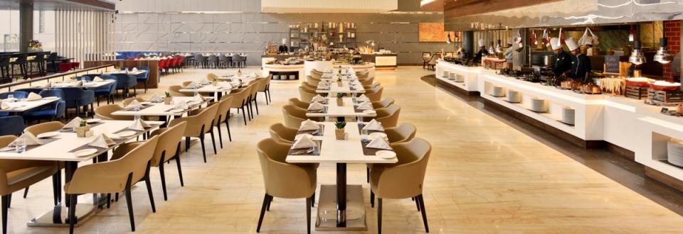 Our show kitchens and live stations are the stages for our culinary performances. Adorned with lofty ceilings, charming water feat...ures, and a serene outdoor courtyard, the very chic and modern ambience at Palato adds to the lavish spread on offer - the finest European, Asian and local delicacies.