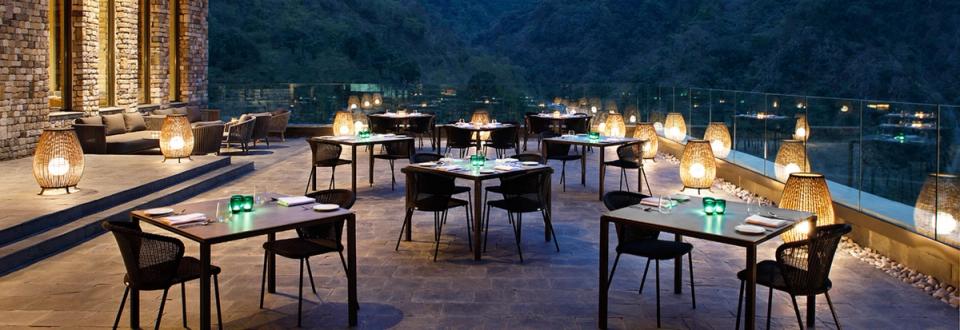 Our expert chefs rustle up a variety of delicious dishes using super foods and farm fresh ingredients. Take your pick from Himalay...an cuisine, heritage Indian dishes, comfort food and healthy fare. Rustic stonework and high ceilings give the restaurant a relaxed, luxurious air. Cherish every bite, with close-up views of the stunning Himalayas, at one of the most charming luxury restaurants in Rishikesh.